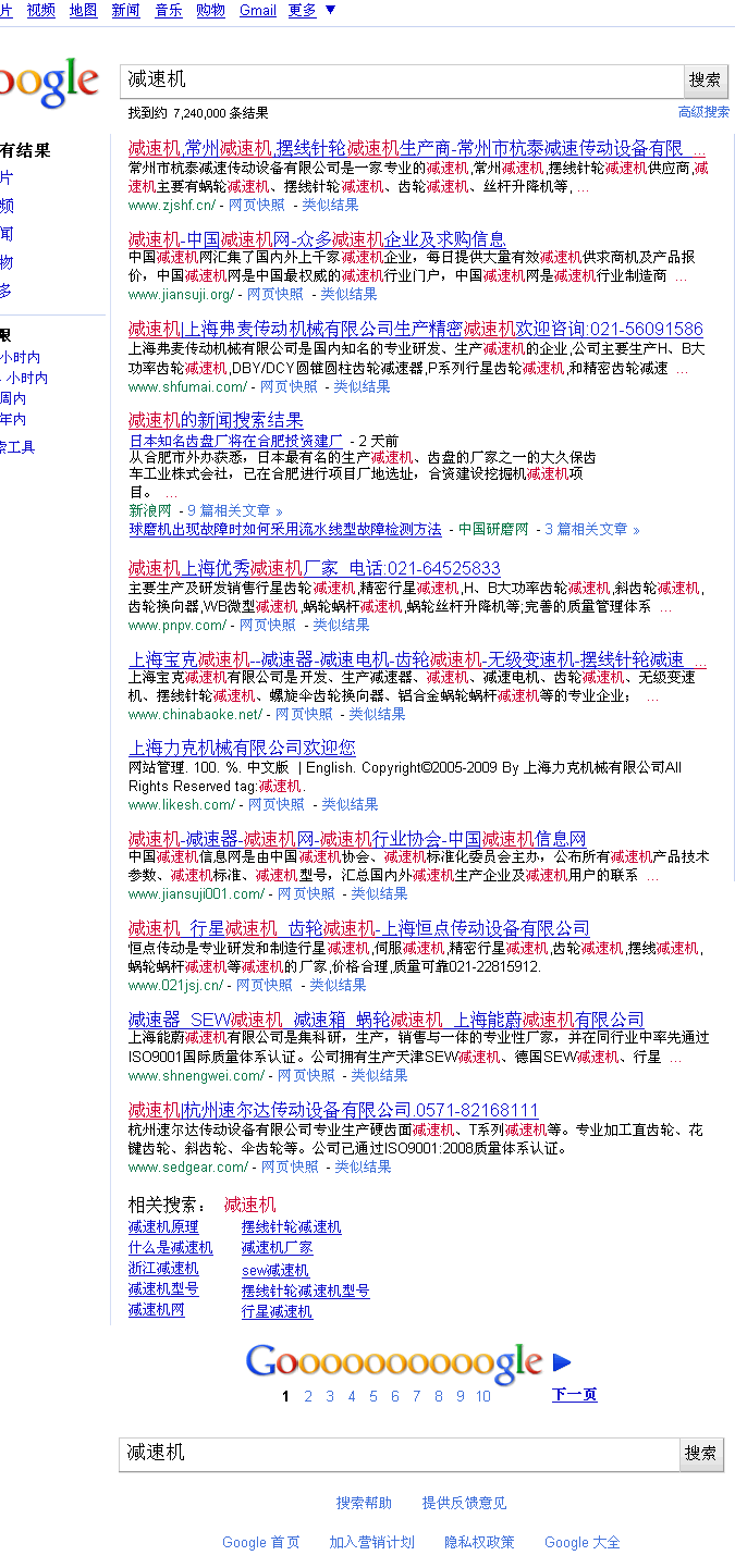 谷歌搜索引擎對本公司網(wǎng)站的收錄做了更新,輸入“減速機(jī)”,現(xiàn)在排名第八位,位于首頁下方。