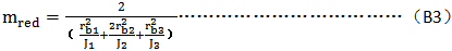 由式(B1)得出的mred值在計(jì)算N時(shí)要用到(見(jiàn)4.5.1.2),在該式中,計(jì)算嚙合剛度Cγ要用近似等于單個(gè)行星齒輪的嚙合剛度,計(jì)算z1時(shí)要用太陽(yáng)輪的齒數(shù)。