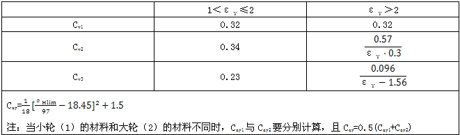 由跑合而產(chǎn)生的Cay值在齒輪不規(guī)定齒廓修形的情況下,代替公式中的Ca。Ca可由表3查取。單對(duì)齒剛度c′見(jiàn)附錄B。