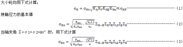 | 6計(jì)算輪齒接觸強(qiáng)度的公式 6.1概述 比較下面應(yīng)力值可決定輪齒抗點(diǎn)蝕的承載能力。 ——接觸應(yīng)力,根據(jù)齒輪的幾何尺寸,制造精度,輪緣、軸承和軸承座的剛性,傳遞的轉(zhuǎn)矩,用接觸應(yīng)力公式(見6.2.1)進(jìn)行計(jì)算。 ——許用應(yīng)力,考慮齒輪運(yùn)轉(zhuǎn)時(shí)工作條件的影響,用許用接觸應(yīng)力公式(見6.2.2)進(jìn)行計(jì)算。 抗點(diǎn)蝕的接觸(赫茲)應(yīng)力是按分布在接觸線上的載荷計(jì)算的,載荷作用位置有以下三種情況: a)作用在單對(duì)齒嚙合區(qū)內(nèi)界點(diǎn),(εvβ=0); b)作用在接觸區(qū)的中點(diǎn),(εvβ>1); c)作用在a)和b)之間的位置。(0<εvβ≤1)。 6.2接觸應(yīng)力 6.2.1接觸應(yīng)力公式 大小輪均用下式計(jì)算: 式中KA、KV、KHβ、KHα、Fmt、dv、uv和Lbm見GB/T 10062.1,dv、uv和Lbm見式GB/T 10062.1的(A.42)和式(A.43)。 許用接觸應(yīng)力 大小輪的許用接觸應(yīng)力要按下式分別計(jì)算: 式中: σHlim——接觸疲勞極限應(yīng)力,見GB/T 3480。 接觸強(qiáng)度(抗點(diǎn)蝕)的計(jì)算安全系數(shù) 大小輪的接觸強(qiáng)度安全系數(shù)要用下式分別計(jì)算: 注:上式是接觸應(yīng)力的計(jì)算安全系數(shù)的關(guān)系式。傳遞轉(zhuǎn)矩的安全系數(shù)等于SH的平方。 最小的接觸強(qiáng)度安全系數(shù)或失效概率見GB/T 10062.1。 |
