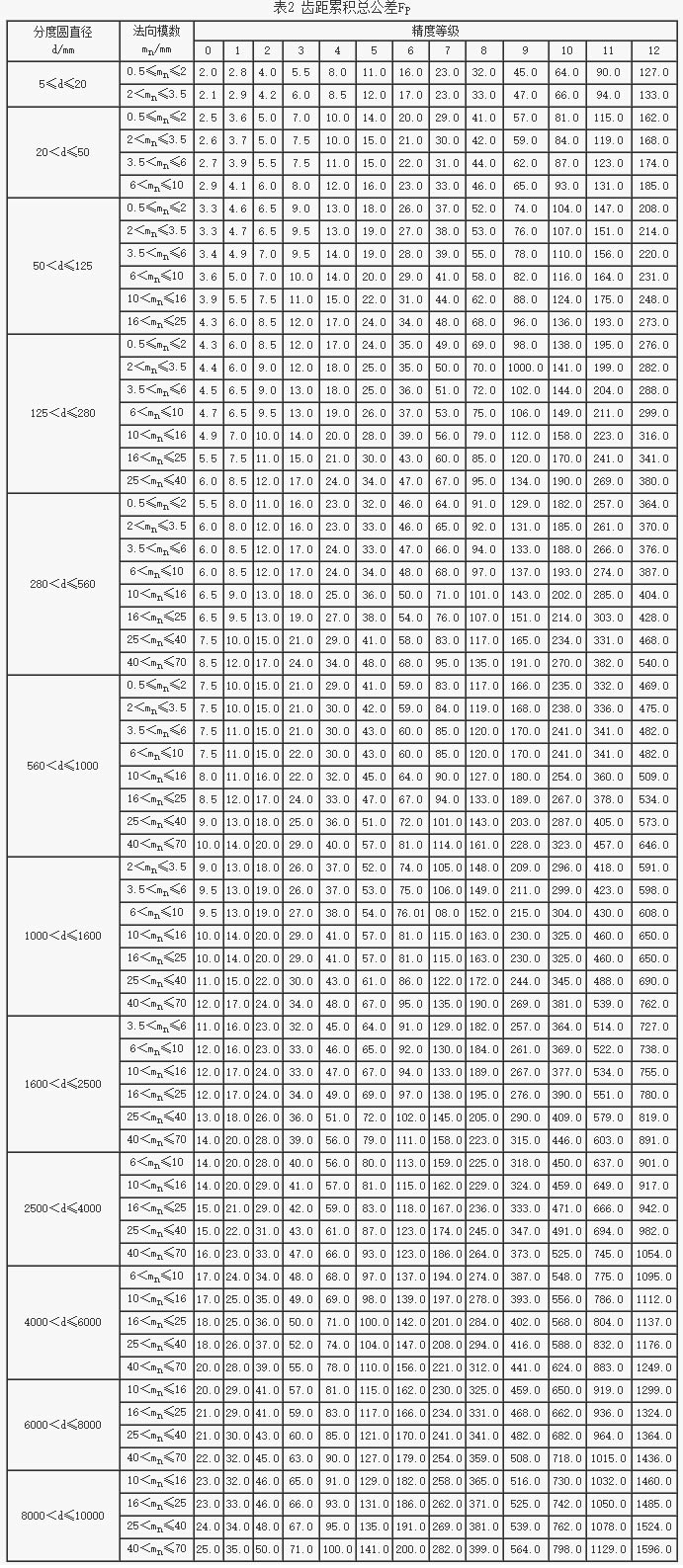 輪齒同側(cè)齒面偏差的定義和允許值輪齒同側(cè)齒面的精度允許值(一)(GB/T10095.1-2001)