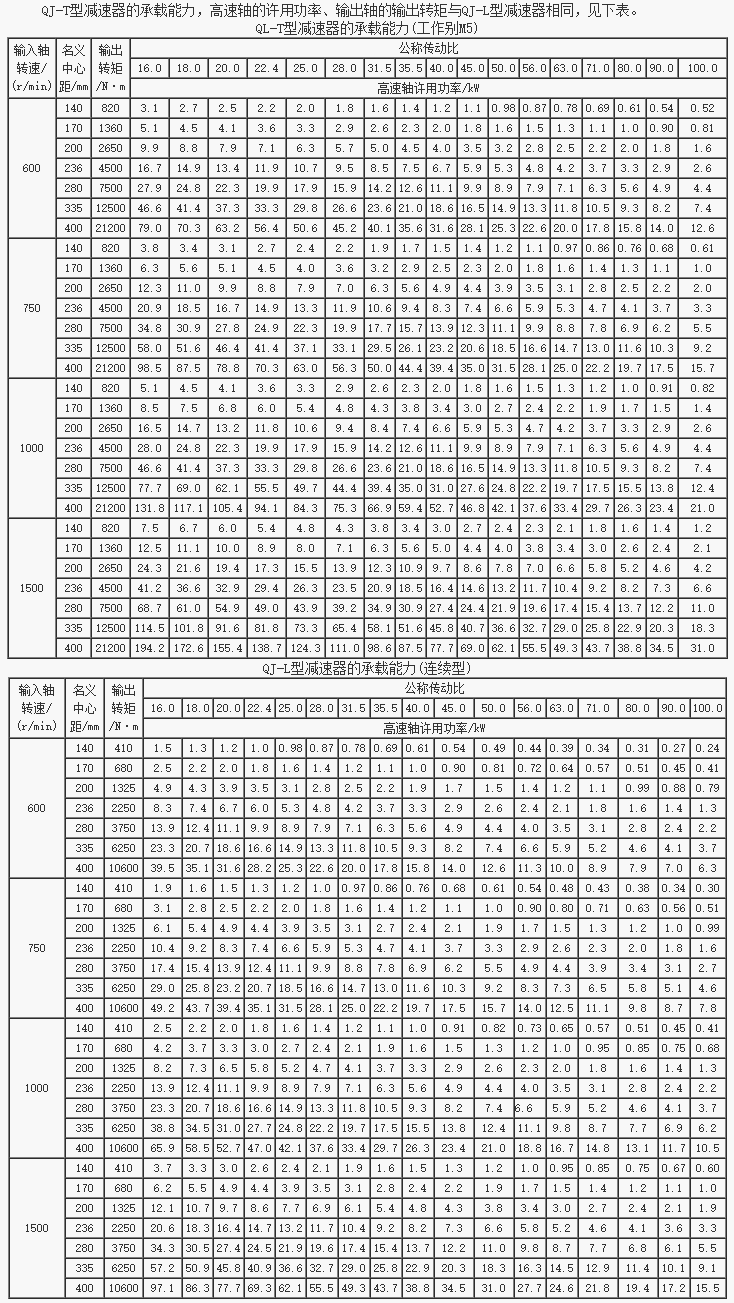 QJ-T型起重機(jī)套裝式減速器承載能力(JB/T8905.4-1999)