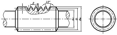 蝸桿一般選用一個視圖,其齒頂線、齒根線和分度線的畫法與圓柱齒輪相同,如下圖所示。圖中以細實線表示的齒根線也可省略。齒形可用局部剖視或局部放大圖表示。