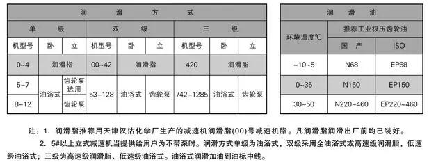 | 1.擺線針輪減速機(jī)使用連續(xù)工作制,允許正向反向運(yùn)轉(zhuǎn)。 2.輸出軸與輸入軸與其他配件配合時,不允許直接錘擊,一方損壞。 3.輸出軸及輸入軸軸伸上的鍵按照普通平鍵型式的尺寸規(guī)定選用,立式減速機(jī)機(jī)座止口直徑的配合公差4.值符合公差配合h9的規(guī)定。 5.使用聯(lián)軸器與工作機(jī)械與電動機(jī)連接時應(yīng)使軸線同心,減速機(jī)的安裝誤差不應(yīng)大于所有聯(lián)軸器的允許誤差值。 6.減速機(jī)安裝后用手轉(zhuǎn)動靈活。 7.臥式雙軸型減速機(jī)一般輸出軸軸心線處于水平位置工作,必須傾斜使用時軸心線仰角不應(yīng)超過15(輸出軸軸伸端向下)。 8.立式減速機(jī)應(yīng)輸出軸軸伸端垂直向下使用,4#以下潤滑脂,可以水平使用。 9.安裝后的減速機(jī),正式使用前必須進(jìn)行試運(yùn)轉(zhuǎn);在空運(yùn)轉(zhuǎn)正常的情況下,再逐漸加載運(yùn)轉(zhuǎn)。 10。沖擊載荷較大、啟動頻繁時機(jī)座與基礎(chǔ)應(yīng)自配定位銷釘,或選用液力聯(lián)軸器。 11.按照下表環(huán)境溫度選用潤滑油;若在高溫或低溫,即超出下表環(huán)境溫度(-10℃-50℃)使用,應(yīng)重新考慮潤滑劑。  |