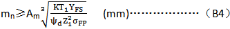 注:對人字齒輪應為表中值的2倍. B2齒根彎曲強度的設計公式 在初步設計齒輪時,根據(jù)齒根彎曲強度,可按下列公式估算齒輪的法向模數(shù): 系數(shù)Am列于表B4。 表B4系數(shù)Am值 螺旋角β | 0° | 8°~15° | 25°~35° | Am | 12.6 | 12.4 | 11.5 |