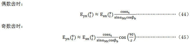 在下面求αmin的公式中,用αwt3作為最小壓力角是一個近似的方法,如時需要更為精確的結(jié)果,可用式49或工50和αmin重新計算,取得最后的數(shù)值。