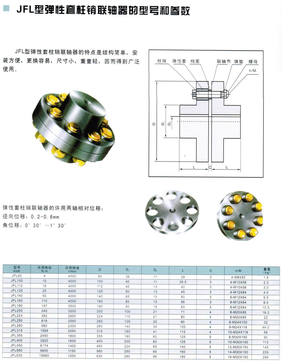 JFL型彈性套柱銷聯(lián)軸器的特點(diǎn)是結(jié)構(gòu)簡單,安裝方便,更換容易,尺寸小,重量輕,因而得到廣泛使用。